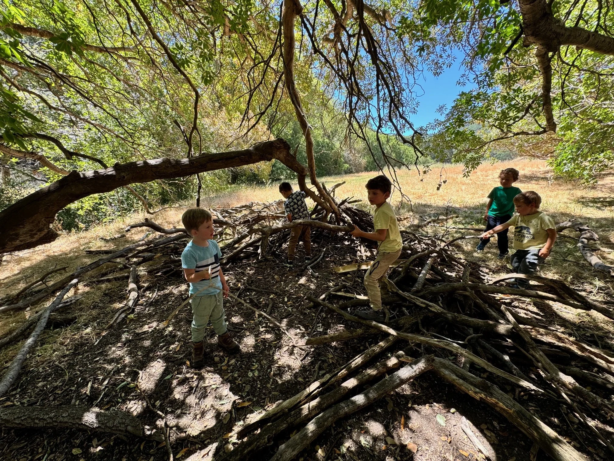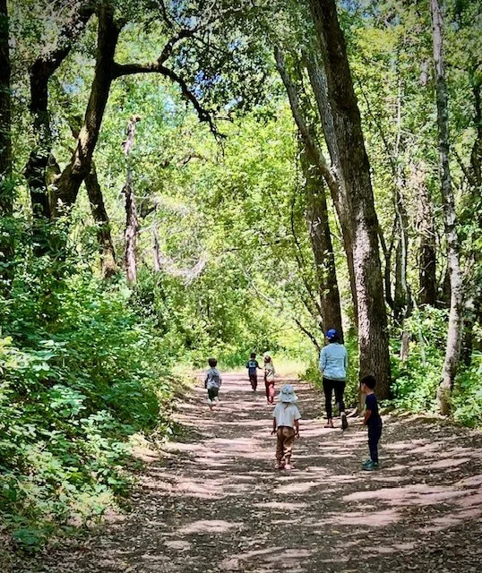 Our Early Summer session is a unique part of our yearly rhythm, offered for just four weeks during the summer months. We gather at the beautiful, shaded Springhill Trailhead in Lafayette, nestled within the expanding Briones Regional Park.